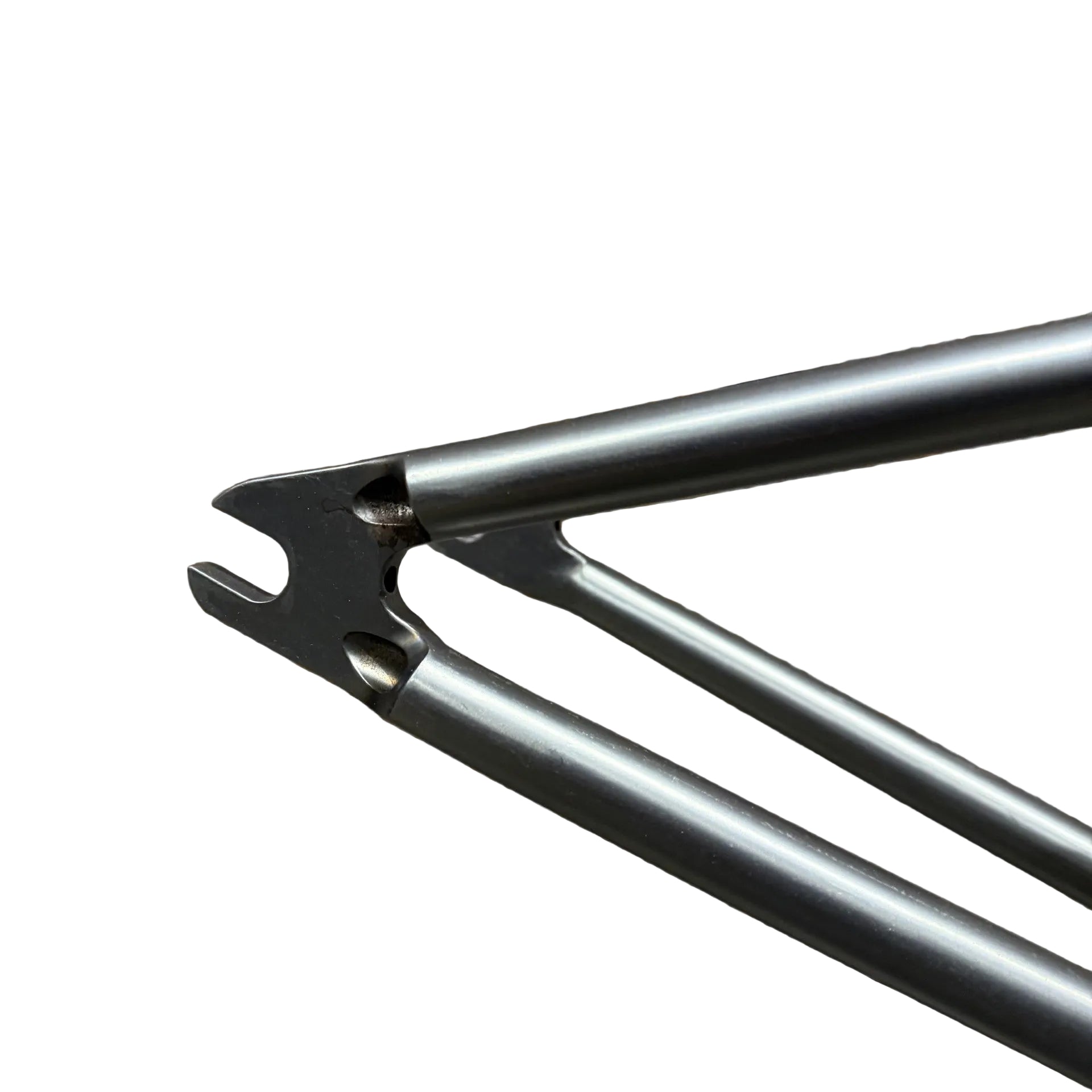 - Dropout: 8mm thick 14mm invest cast with an integrated chain tensioner