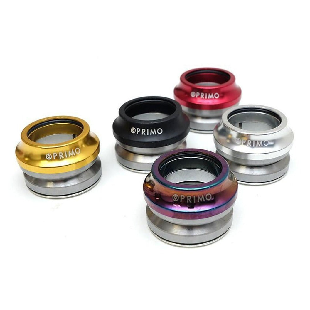 The Primo Integrated Headset features precision sealed 45/45 campy spec cartridge bearings and a large aluminum top cap.