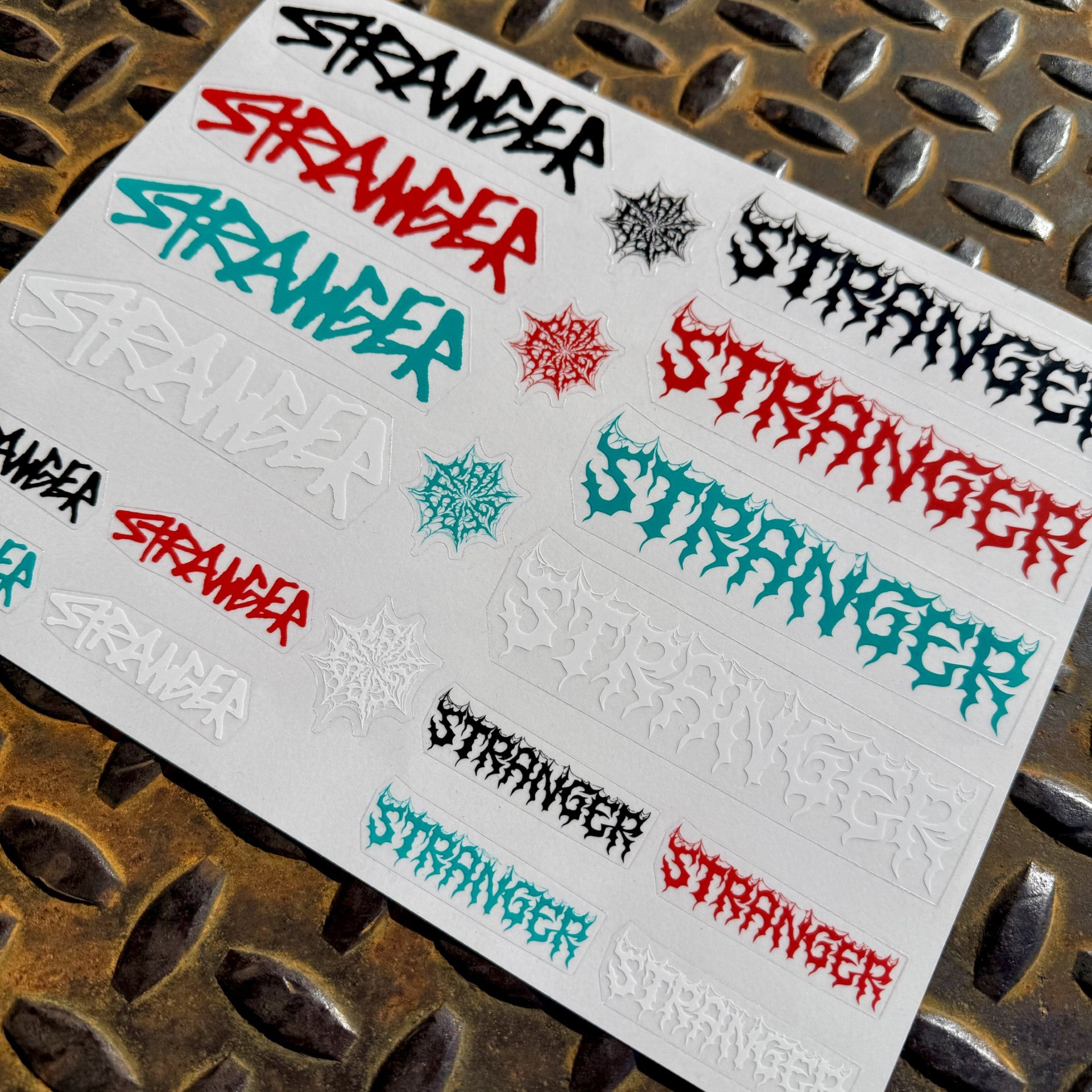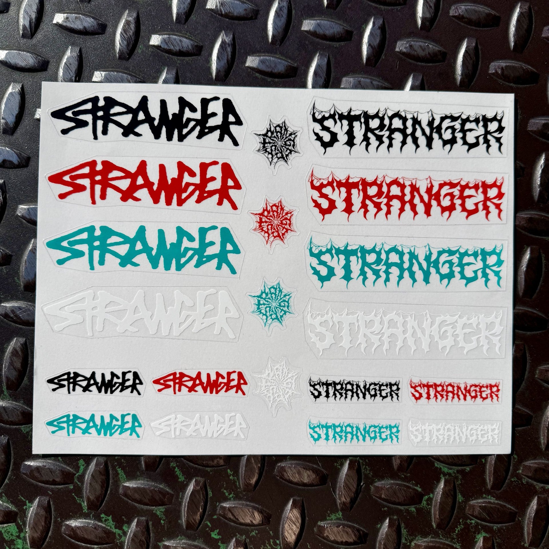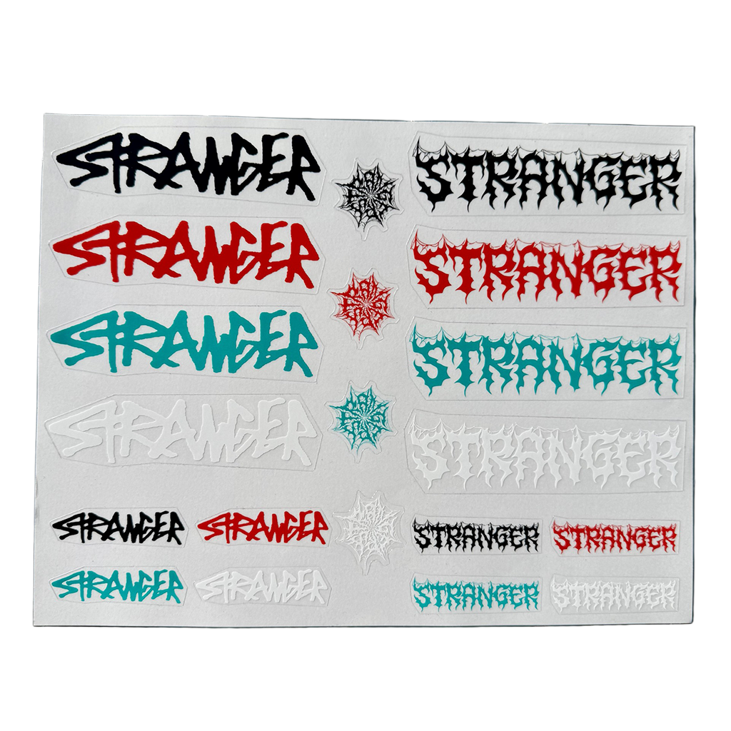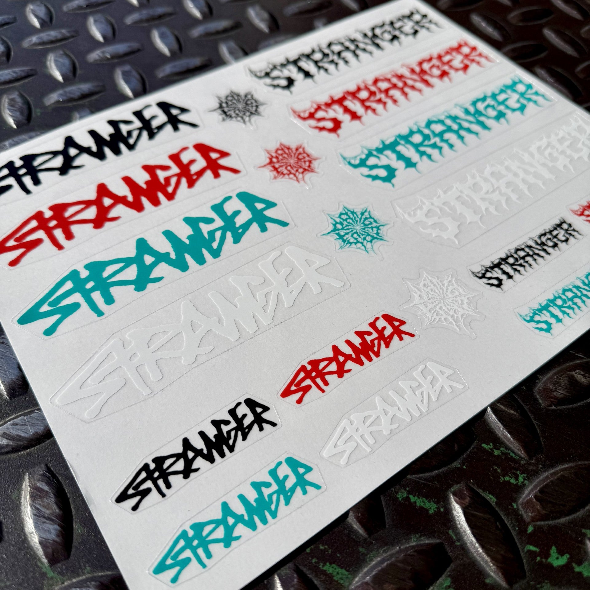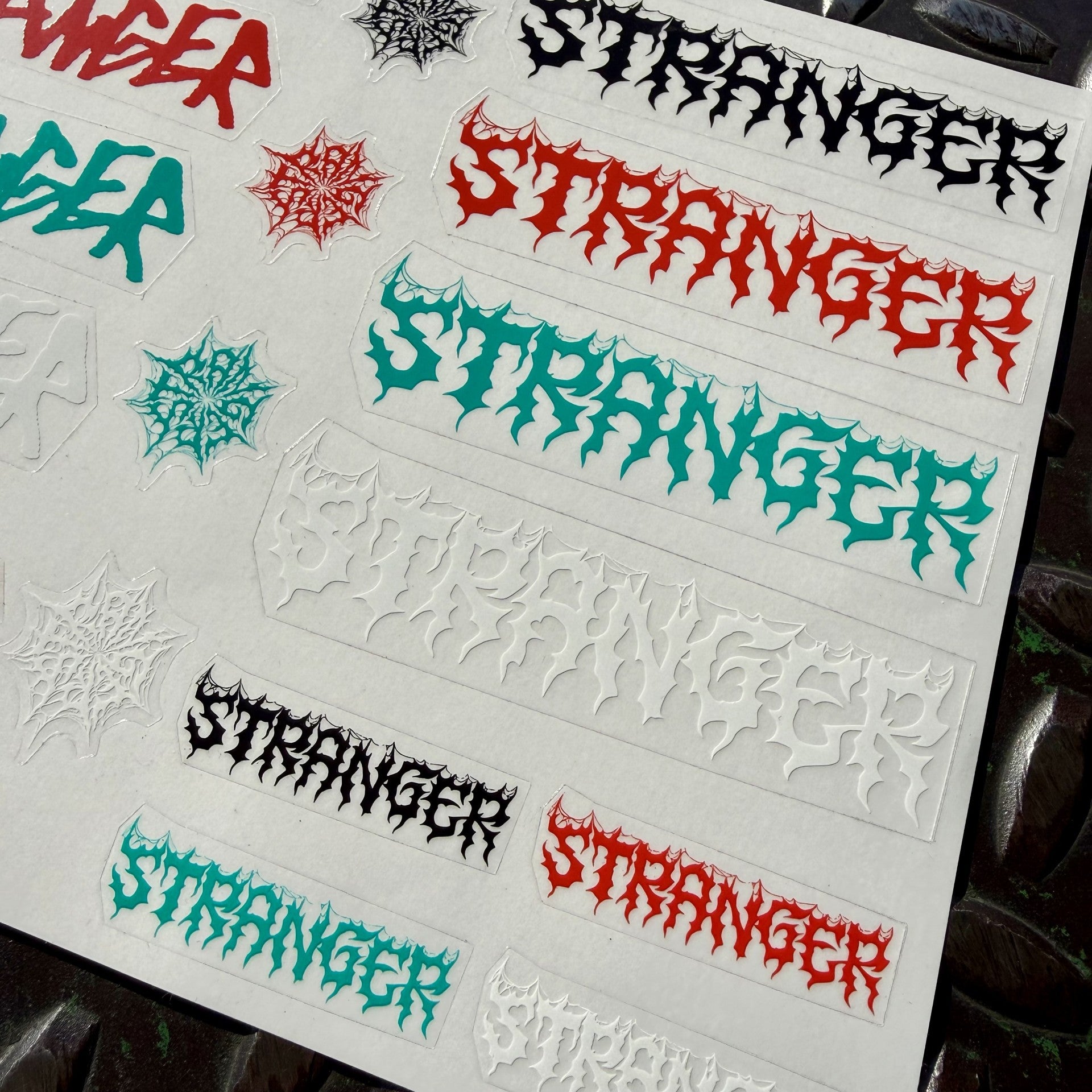 This 8 x 11 sheet features a mix of STRANGER’s original logo hits and new Widow graphics, giving you both sides of the brand in one set. From clean throwback tags to aggressive web-style lettering, it’s all here.